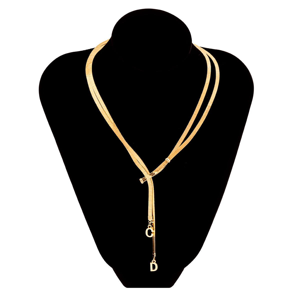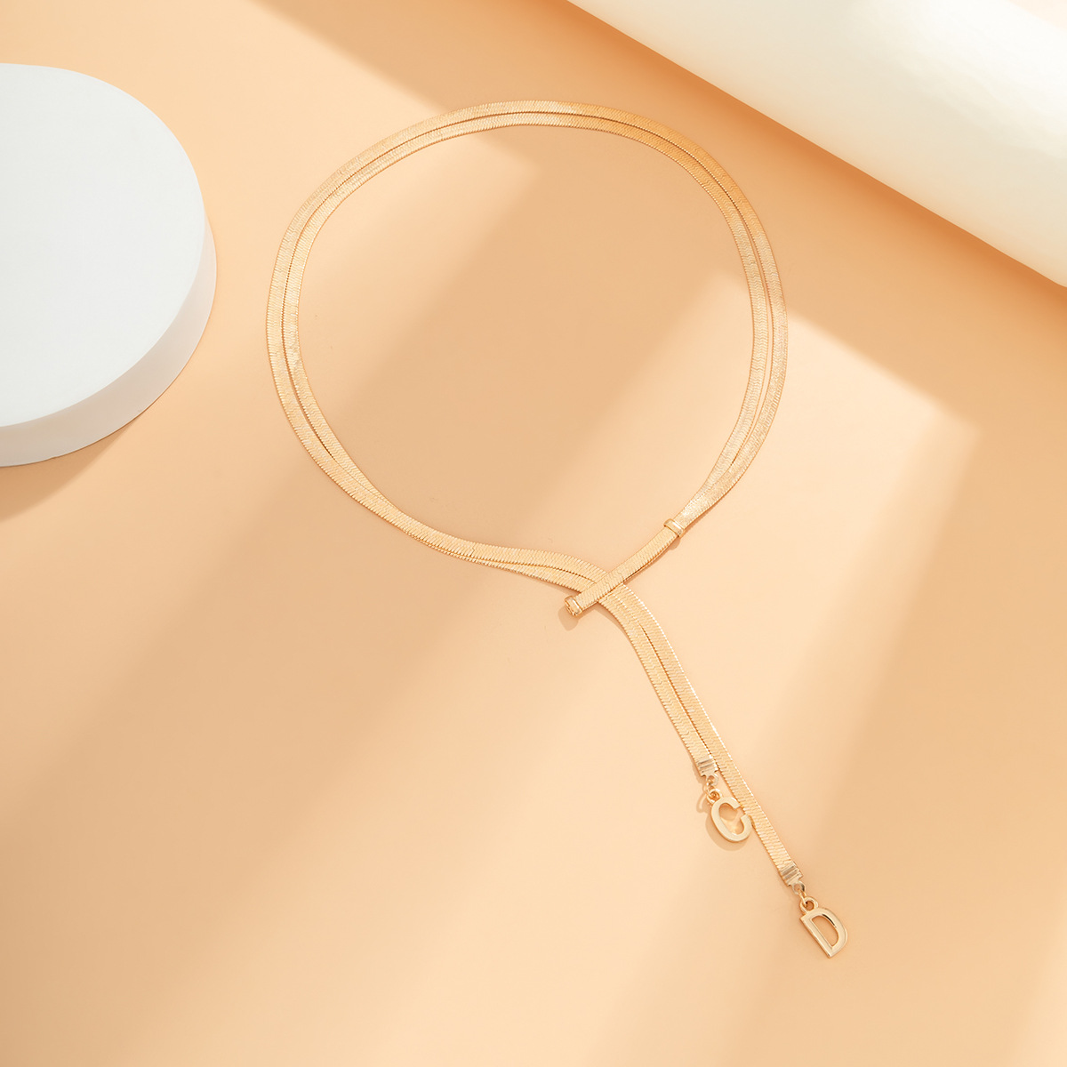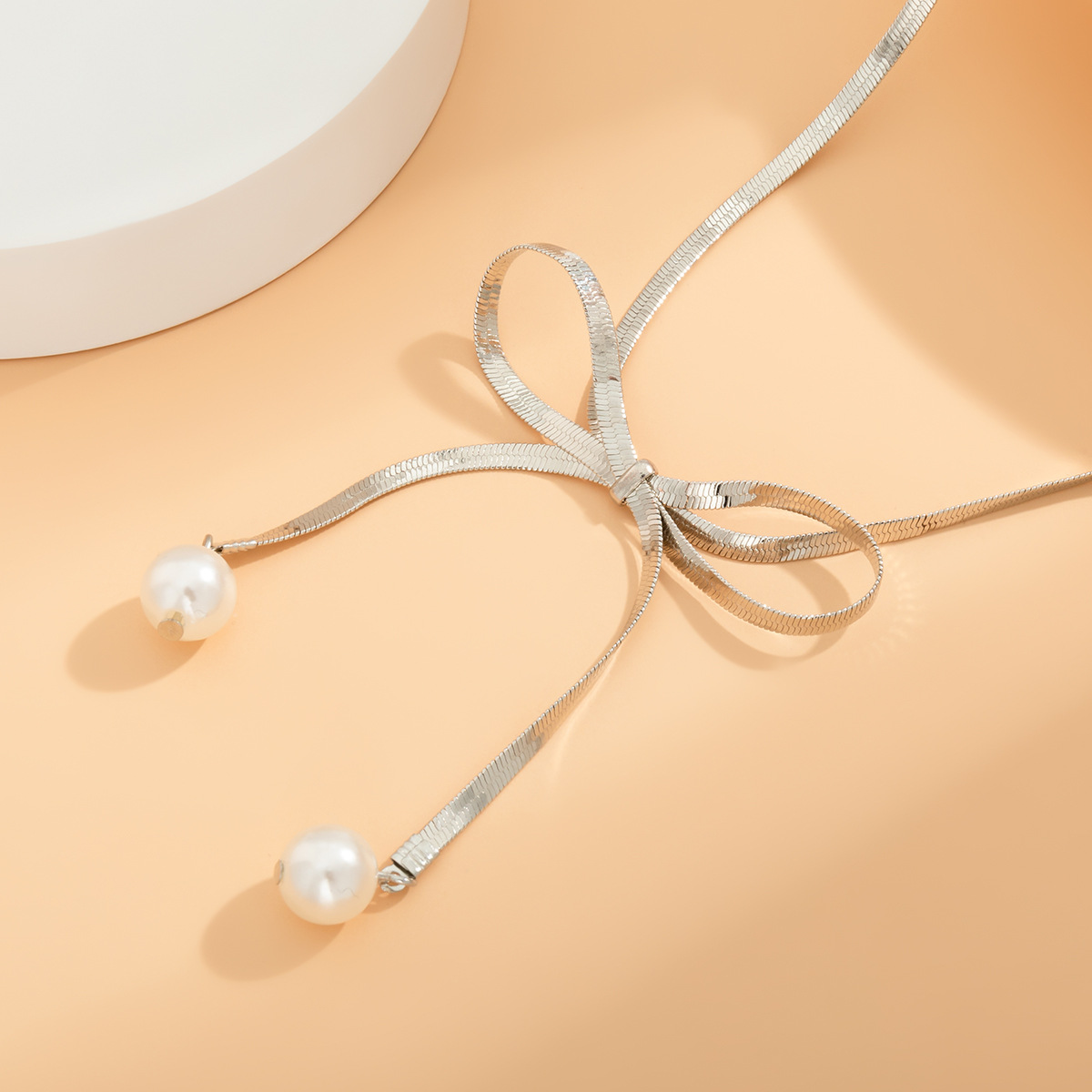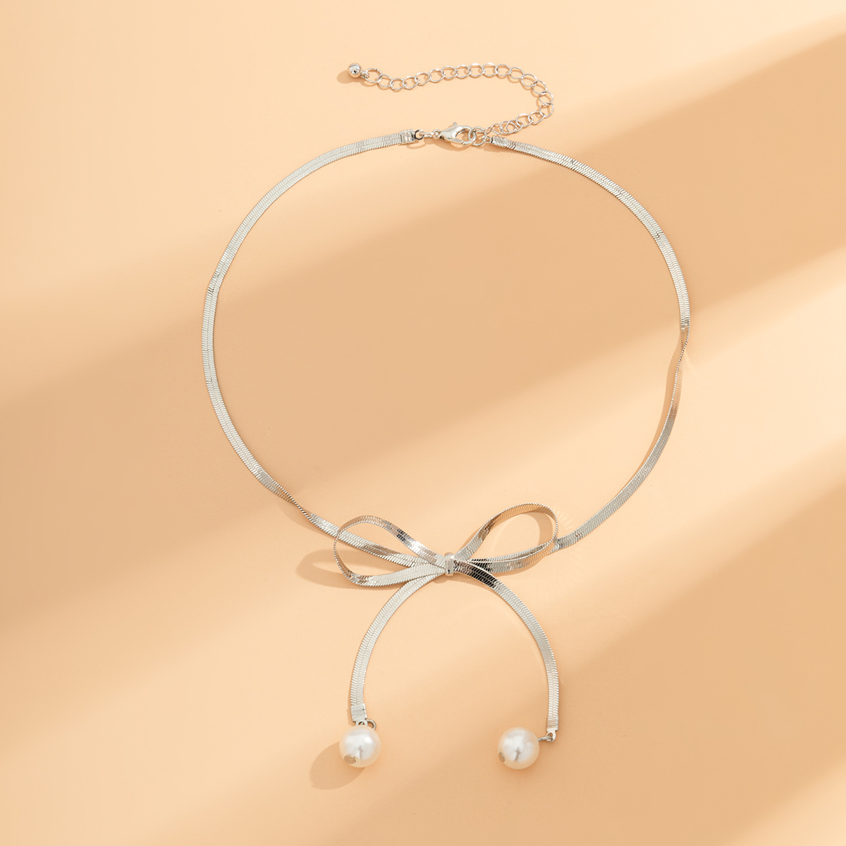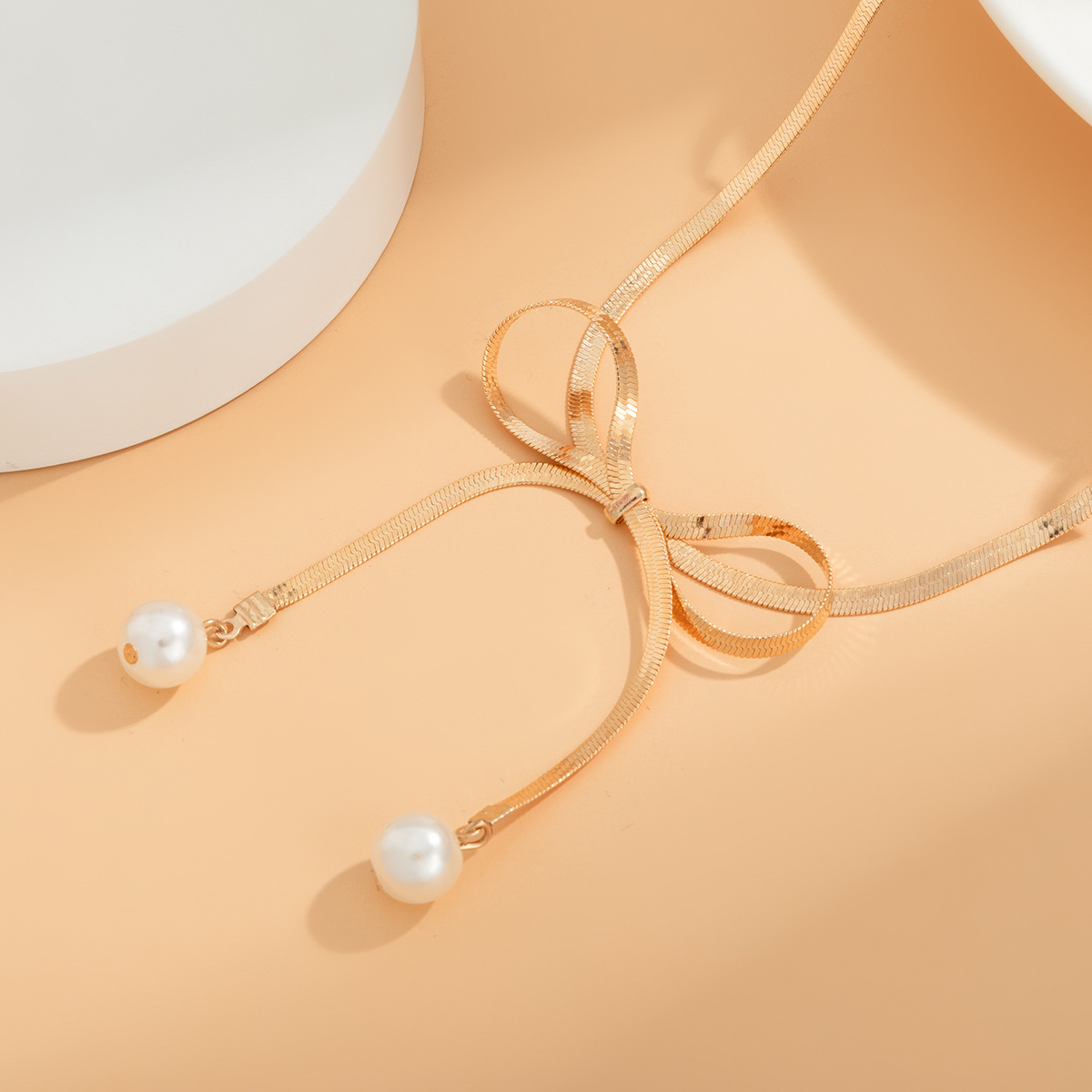 Niche metal snake bone chain bow collarbone chain retro imitation pearl temperament letter pendant necklac